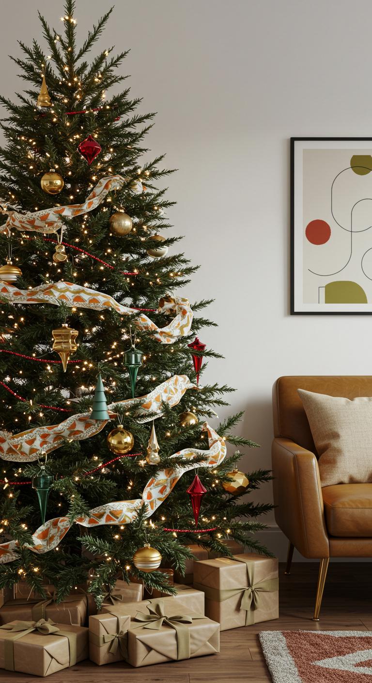 Embracing mid-century modern minimalism brings a sleek sophistication to your Christmas tree decor.