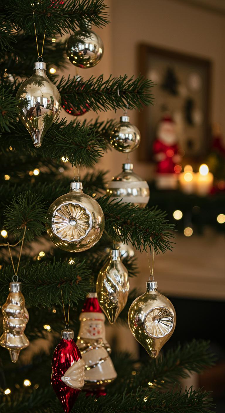 Adorn your tree with antique ornaments that tell a story, creating a stunning visual tapestry.