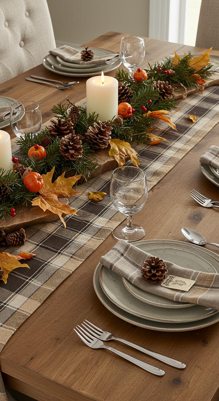 When planning your centerpiece arrangement, mix heights and incorporate seasonal elements like pinecones or candles.
