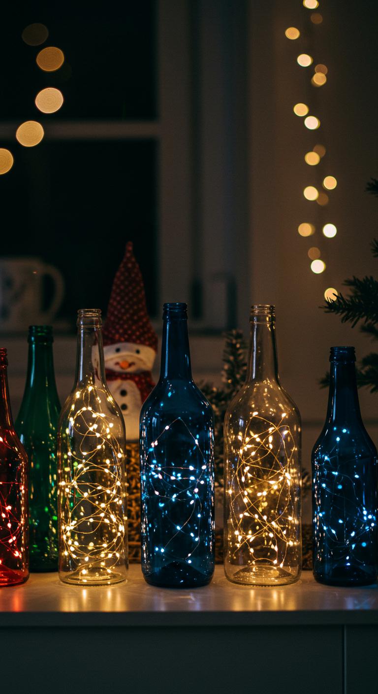 You can also create decorative bottle lights by adding fairy lights inside, casting a warm glow that enhances your festive atmosphere.