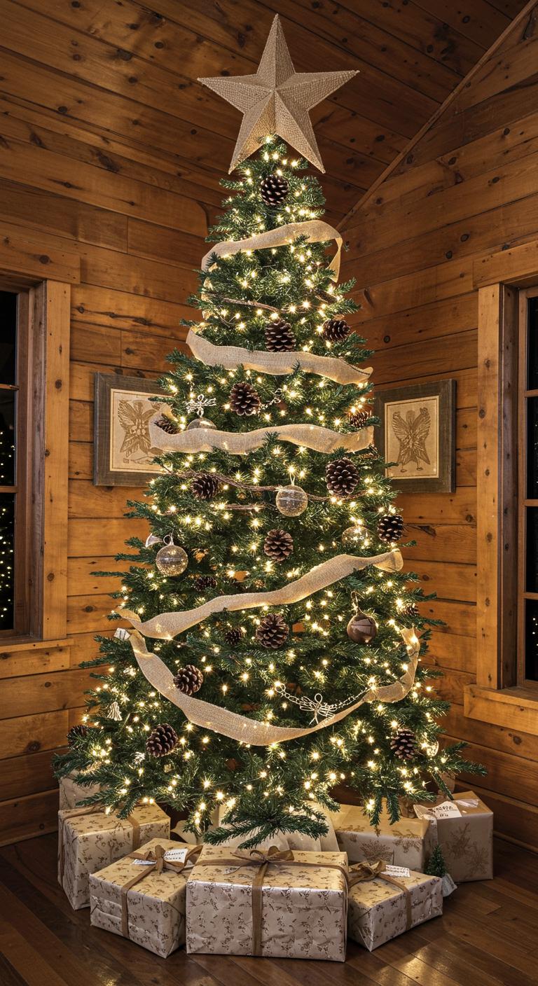 Use natural, rustic materials like burlap, twigs, or pinecones to create a unique design that complements your tree height.
