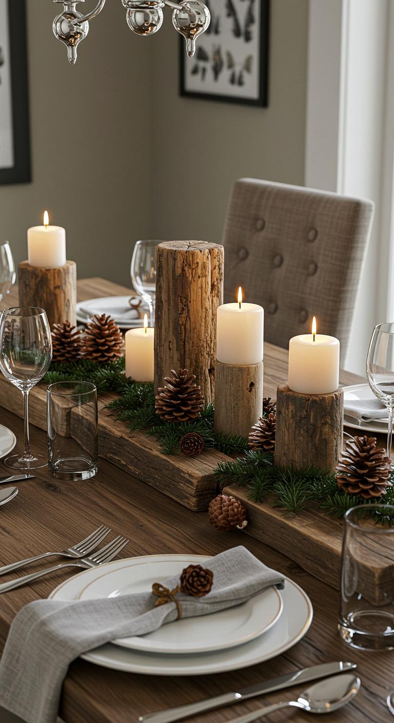 Reclaimed wood centerpieces offer a unique way to infuse rustic charm into your holiday table settings.