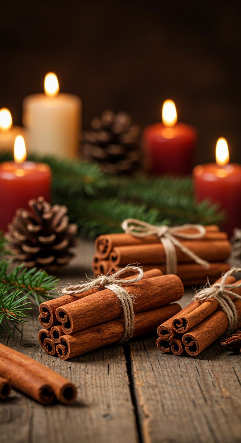 Cinnamon stick bundles are a charming and aromatic addition to your holiday decor that you can easily make at home. Gather several cinnamon sticks and tie them together with twine or ribbon. These cinnamon stick crafts not only look delightful but also offer wonderful holiday scent ideas. Place them in your living room or hang them in your kitchen to spread festive cheer!