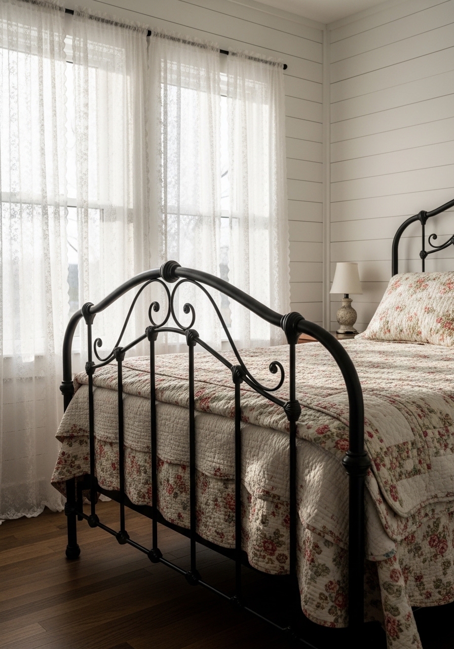 Layering vintage linens and quilts on your bed brings that soft, heirloom feel to a country farmhouse bedroom. I remember inheriting my aunt’s old quilts and how they instantly made my room feel more personal. Mix patterns subtly for depth, and add a few throw pillows for extra coziness. It’s a simple update that transforms sleep time into something special.