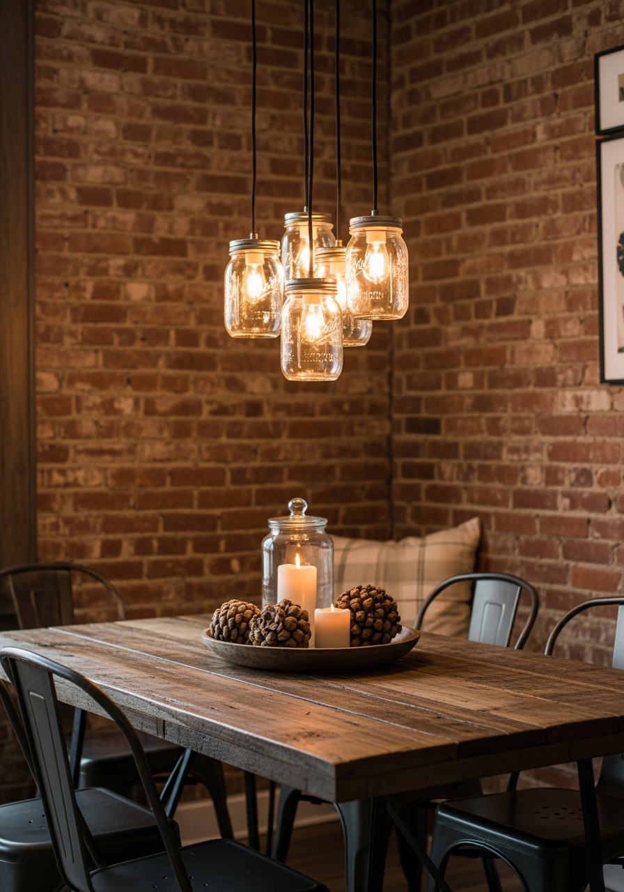 Installing mason jar lights as pendants brings a DIY charm to your dining or kitchen area. I hung some in my breakfast nook and they cast the softest light during dinners. Use clear jars for simplicity or tinted ones for a subtle hue. It’s an easy project that screams country aesthetic.