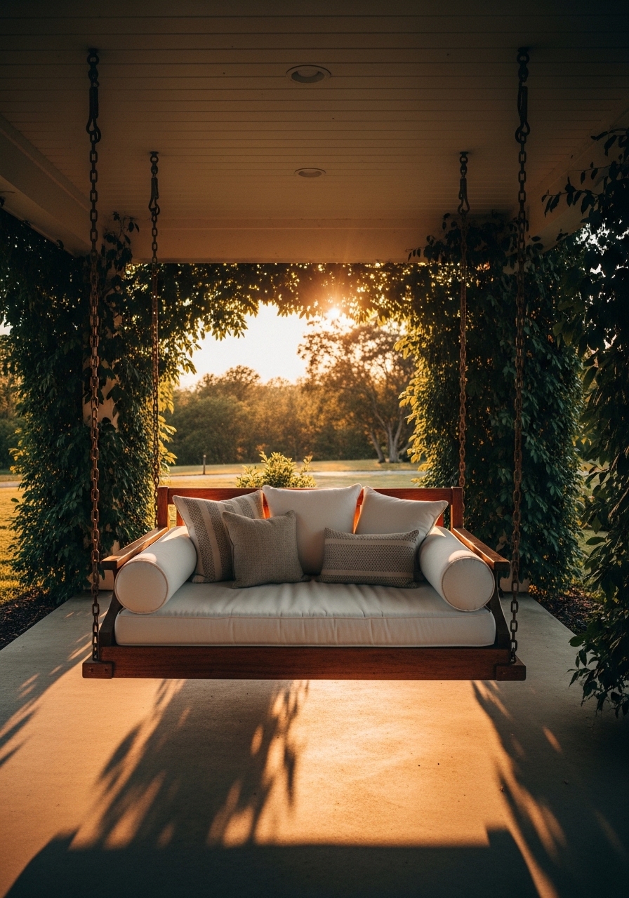 Adding a swing to your porch creates a relaxing spot for lazy afternoons. Mine’s where I sip tea and watch the world go by. Cushion it with weatherproof fabrics and add blankets for cooler days. It extends your living space outdoors seamlessly.