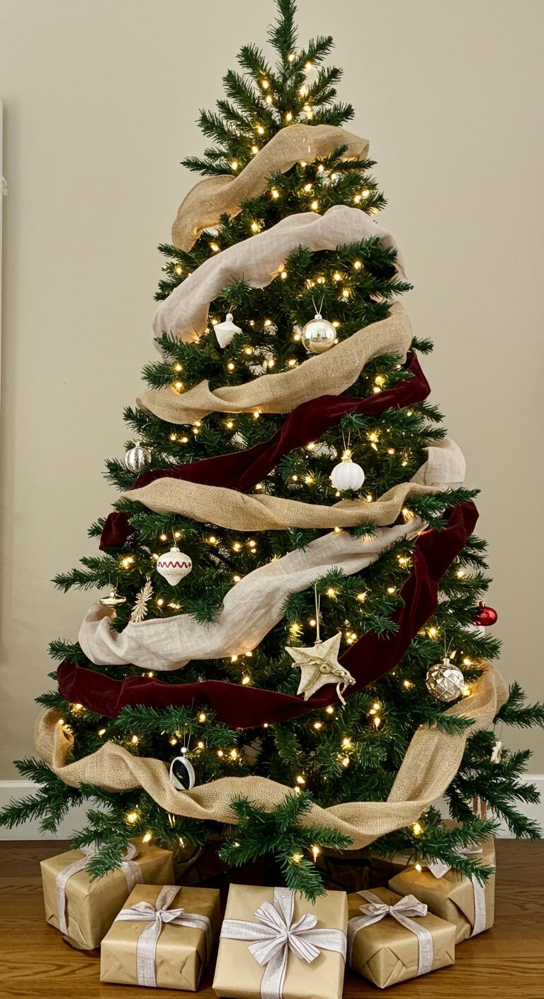 Three key elements can elevate your Christmas tree from ordinary to extraordinary: textured layering with fabrics.