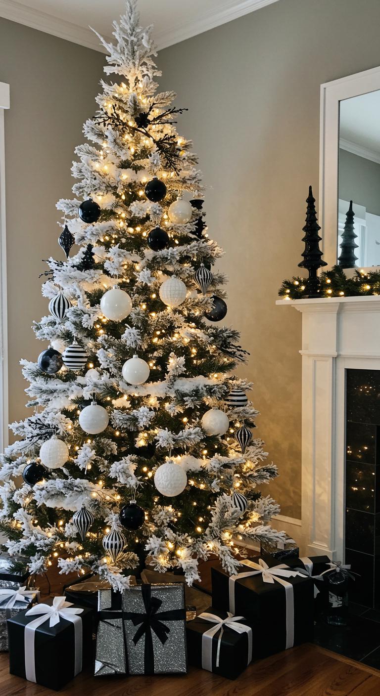 When you want to make a bold statement this holiday season, a chic black and white scheme can effortlessly elevate your Christmas tree decor.