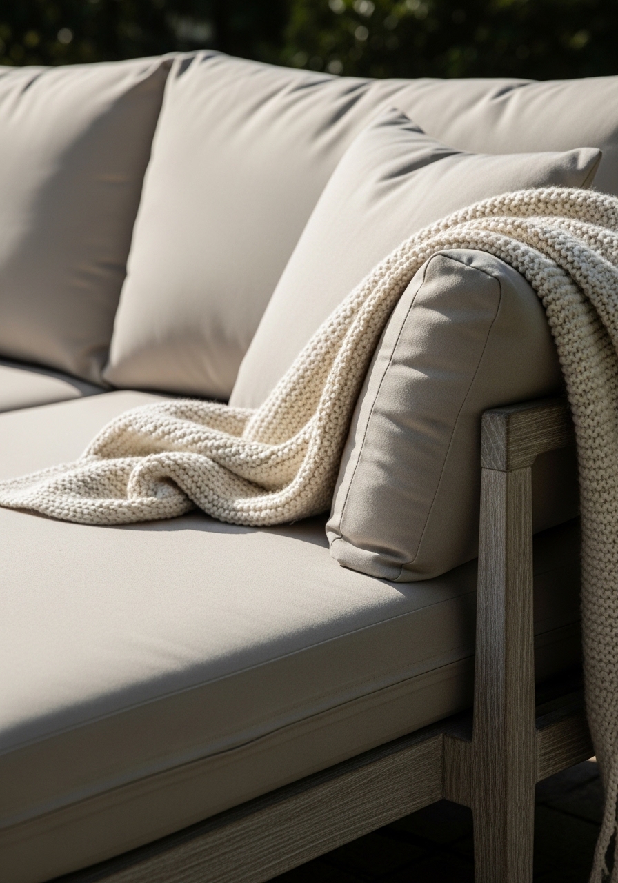 Choose UV fabrics: Sunbrella-style fabrics last. Try Sunbrella outdoor cushion covers.