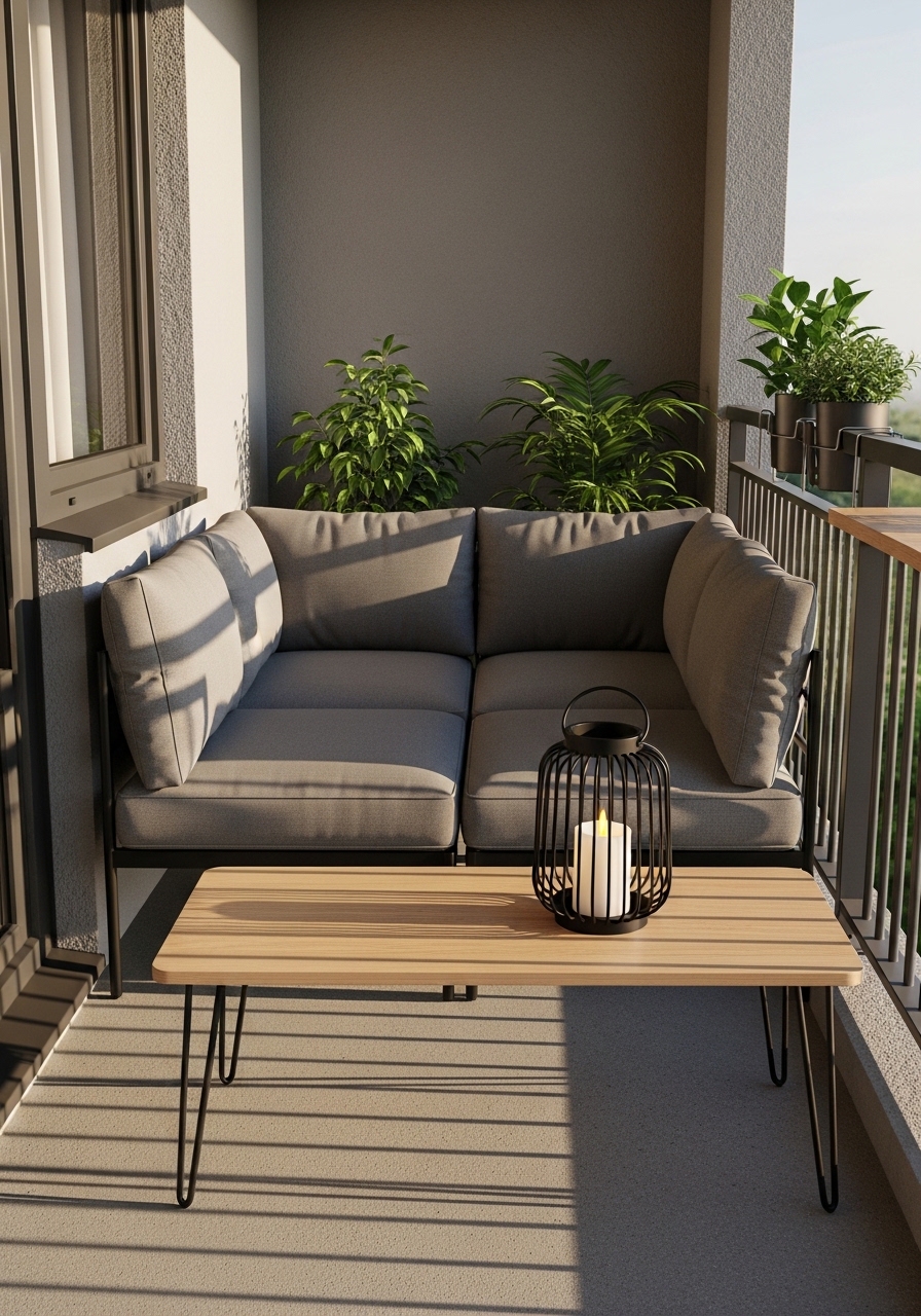I picked a modular sectional because it fits tight layouts and reconfigures for guests. Each module should be 24–30 inches deep. I liked a 3-piece set in charcoal. I used a compact modular outdoor sectional and a slim outdoor coffee table. Styling tip: keep back cushions uniform and add one small patterned pillow. Mistake to avoid: buying too-large ottomans that block traffic flow.