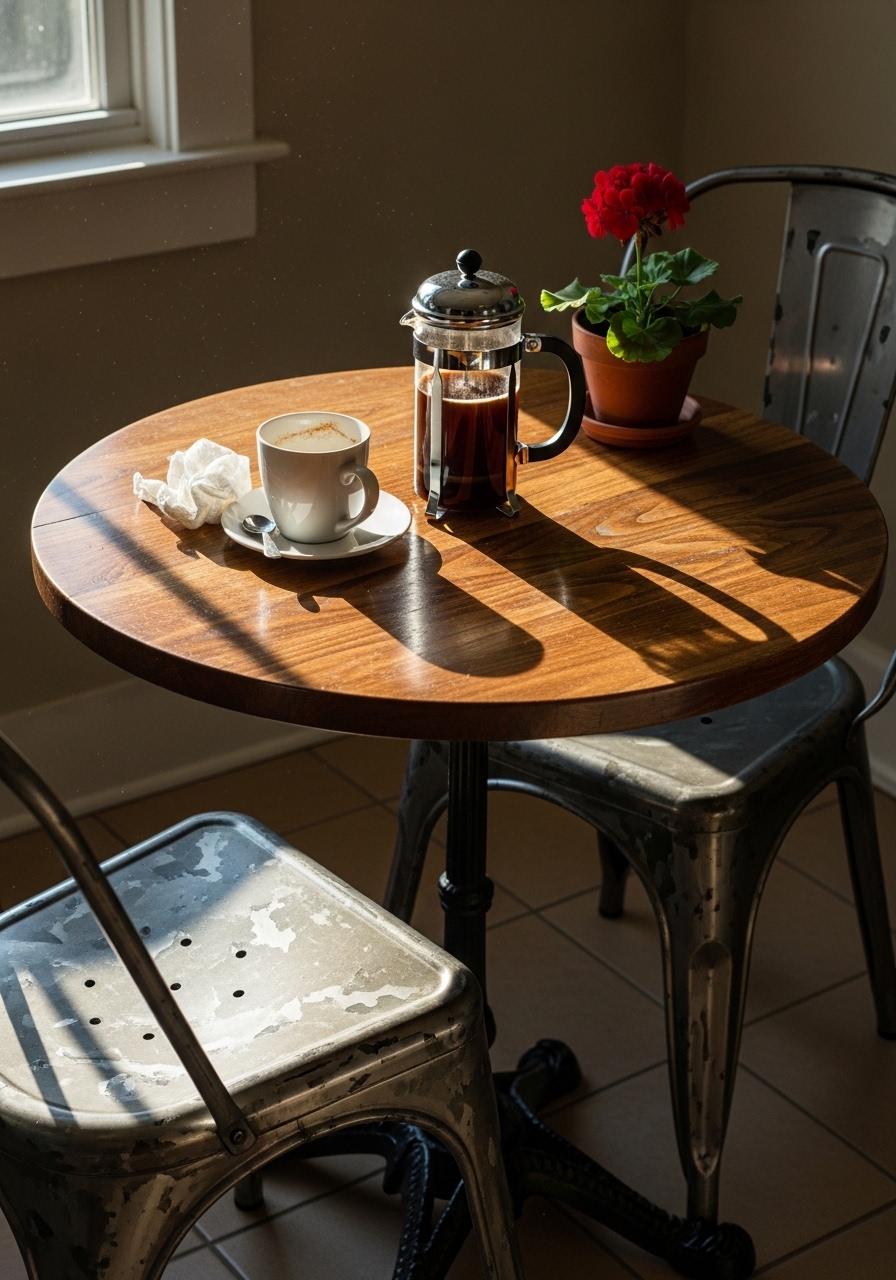 A bistro set makes coffee feel intentional. I used a 24–28 inch round table for two. Lightweight metal sets fold and store easily. I recommend this folding bistro set and outdoor seat cushions 16×16. Styling tip: use a small tray and two matching mugs. Mistake to avoid: choosing a tiny table that can't hold a plate and drinks together.