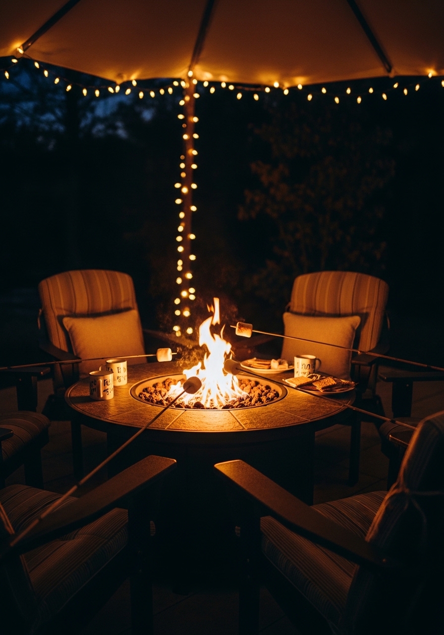 A fire pit table extends outdoor seasons. I picked a propane model with a glass wind guard for safety. A 36–42 inch tabletop doubles as dining surface. I chose a propane fire pit table and a 20-pound propane tank cover. Styling tip: keep seating 36 inches from the flame for comfort. Mistake to avoid: placing it under low eaves or close to flammable fabrics.