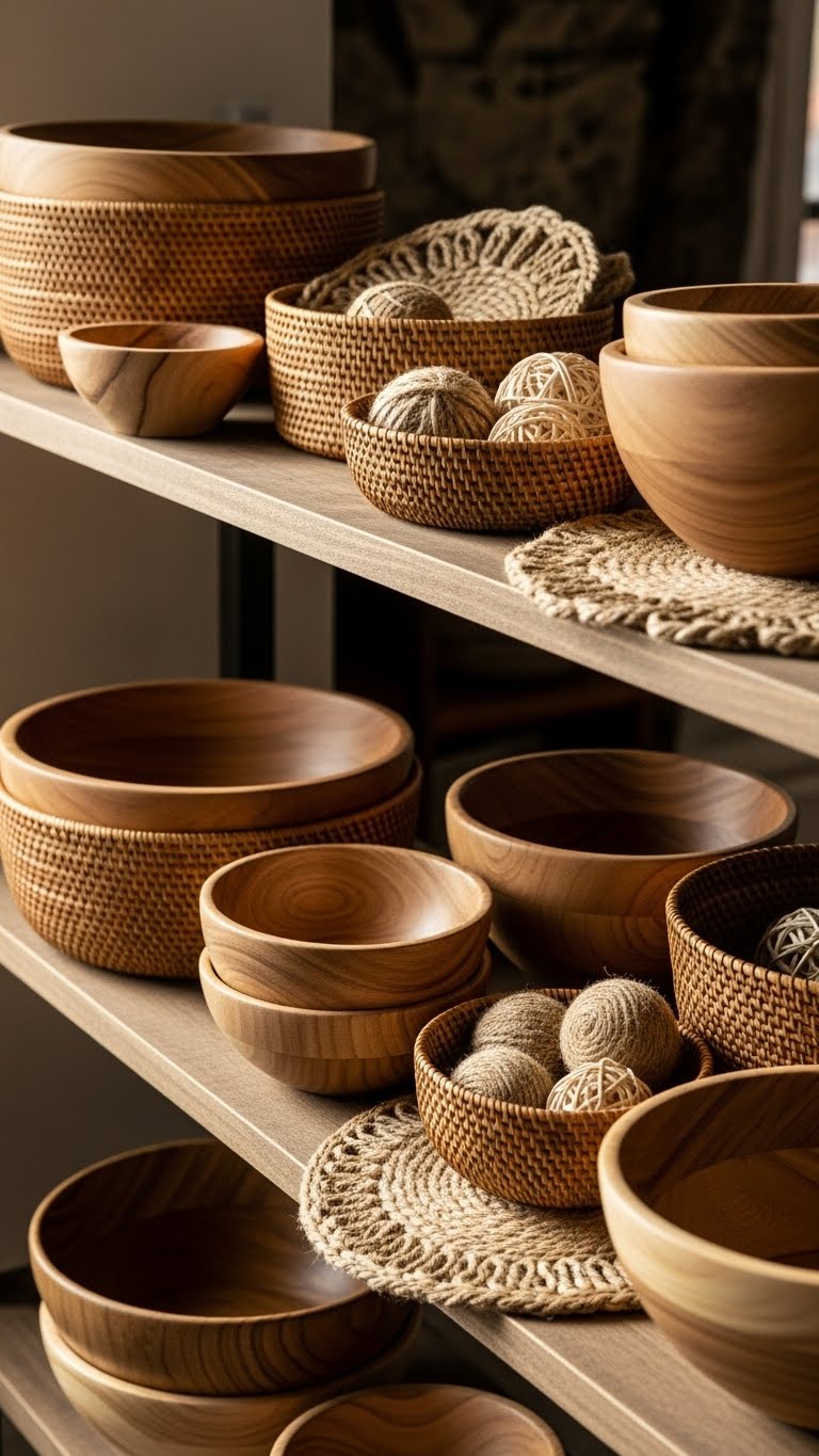 Incorporate wood or rattan for added feel. Place them on shelves or floors. This gives rooms a grounded look. For affordable sources, look at garage sales. DIY idea: Weave twine around a frame for a simple basket. Use it to hold books. Mix with other items. Keep numbers low. Your decor feels more real. Test on a small surface. See the effect.