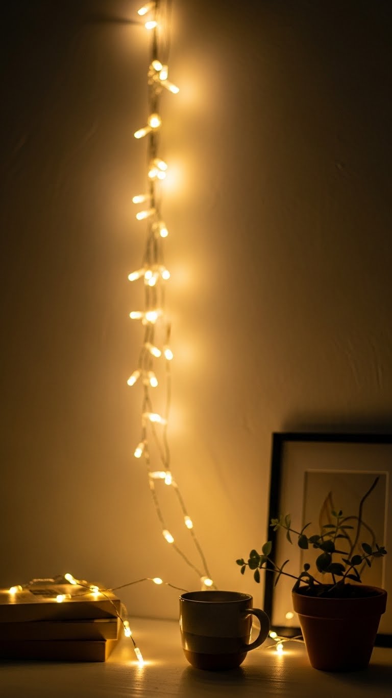 String neutral lights in key spots. Hang over frames. This adds magic. For deals, reuse old sets. DIY tip: Drape along shelves. Use sparingly. Your area sparkles. Set them up easy.