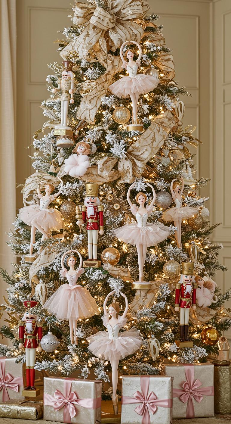 Though rooted in classic holiday charm, a Nutcracker Ballet tree turns your space into a stage-ready vignette, sparkling with porcelain ballerinas, gilded soldiers, and delicate tulle tutus.