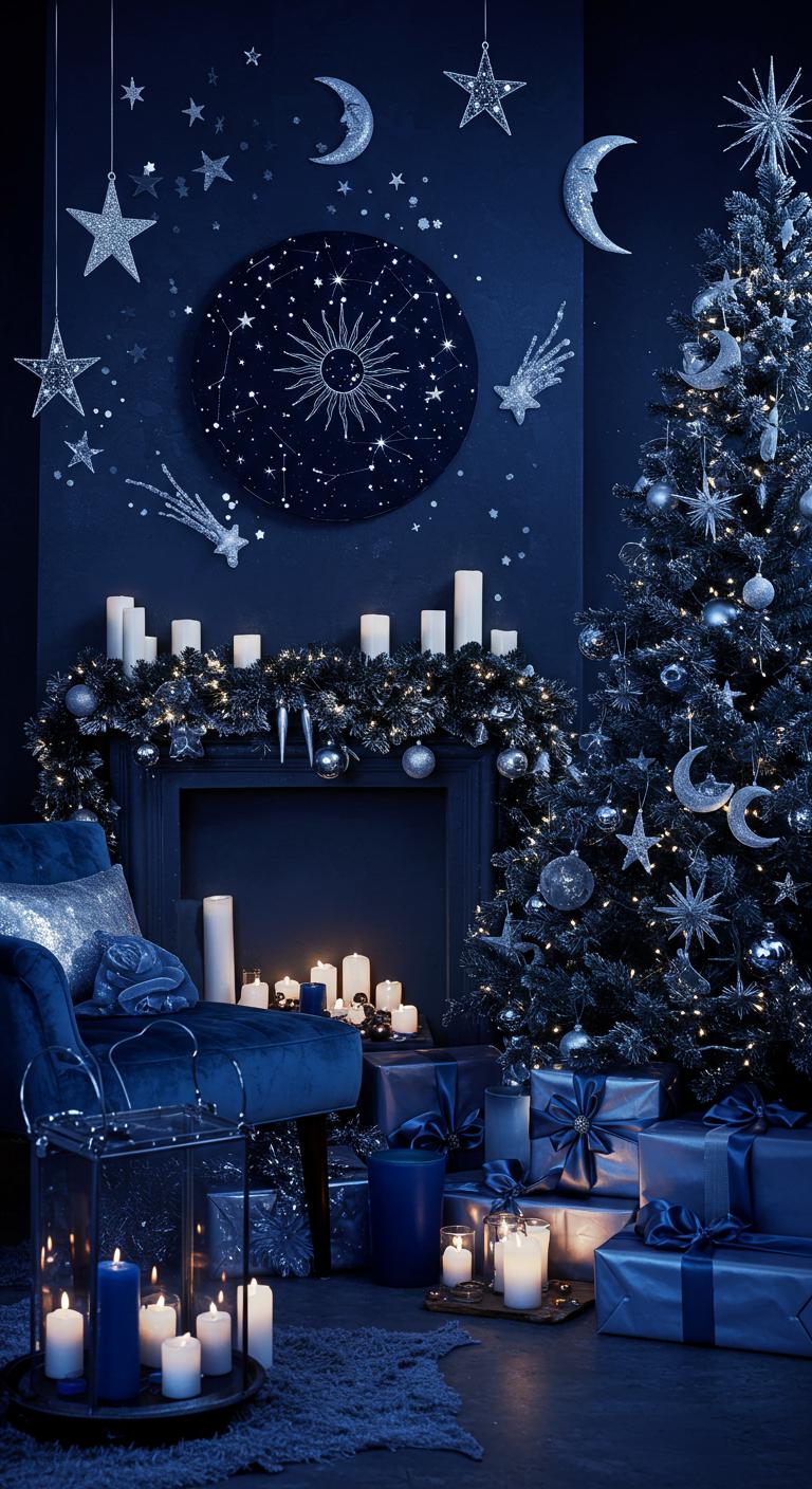 Wrap your space in midnight blue and silver and let a Starry Night Celestial tree feel like a slice of the cosmos indoors.