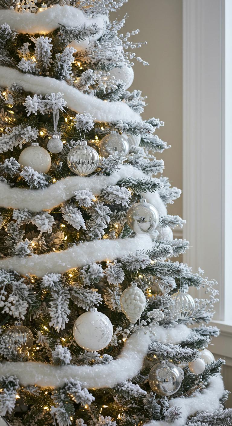 When you strip the palette to pure whites and frosted silvers, Winter Wonderland Whiteout turns your tree into a serene, high-fashion statement—think snowy textures, translucent glass baubles, faux-snow flocking, and twinkling cool-white LEDs that mimic moonlight.