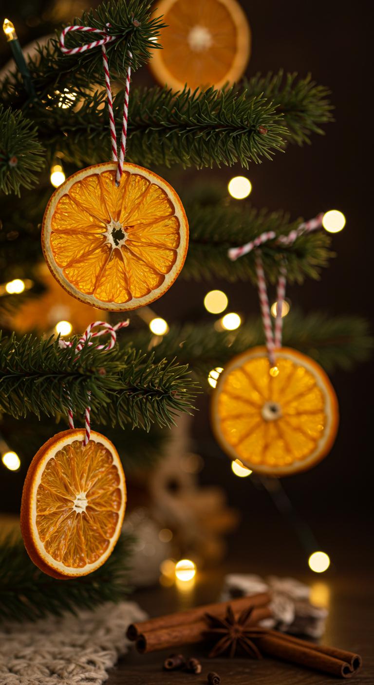 Sun-dried orange slices bring a sunny, fragrant touch to your tree and are surprisingly simple to make at home: you’ll slice oranges thinly, dry them slowly in the oven or a dehydrator until translucent, then add a ribbon or twine for hanging.