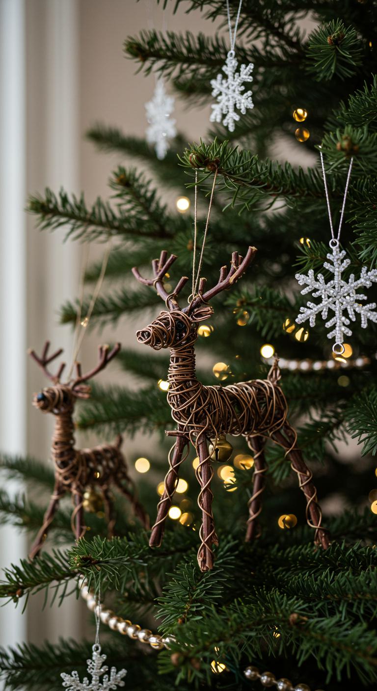After enjoying the delicate sparkle of beaded snowflakes, try bringing a woodsy, homespun charm to your tree with rustic twig reindeer ornaments.