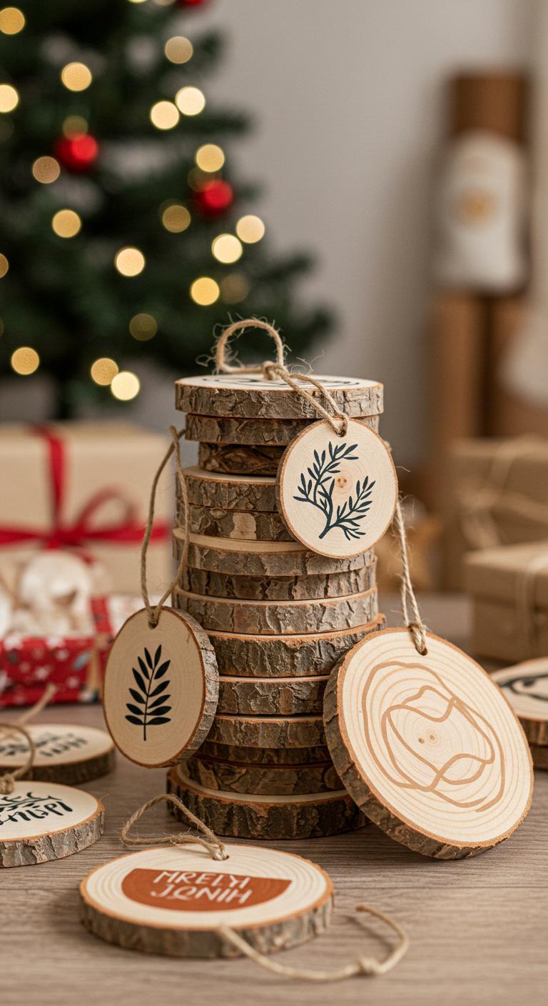 Start with a stack of smooth wooden discs and a few simple paints — you’ll be amazed how quickly they turn into charming, personalized ornaments. Sketch minimalist motifs, layer bold colors, and seal each piece for durability. Add twine loops and experiment with painted designs or tiny personalized messages in crisp lettering. They make free-spirited, handcrafted gifts or peaceful keepsakes for your tree.