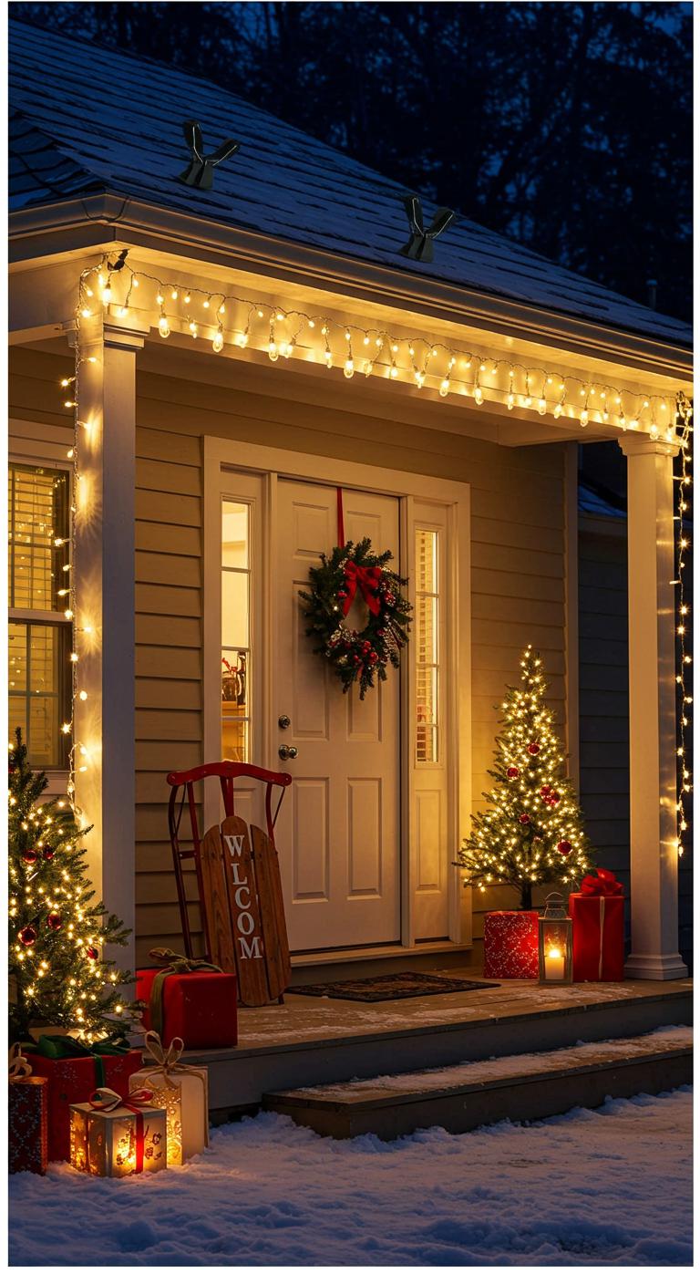 After you prop that welcome sled by the door, bring the glow up to the porch with a string light canopy that makes evenings feel cozy and festive.