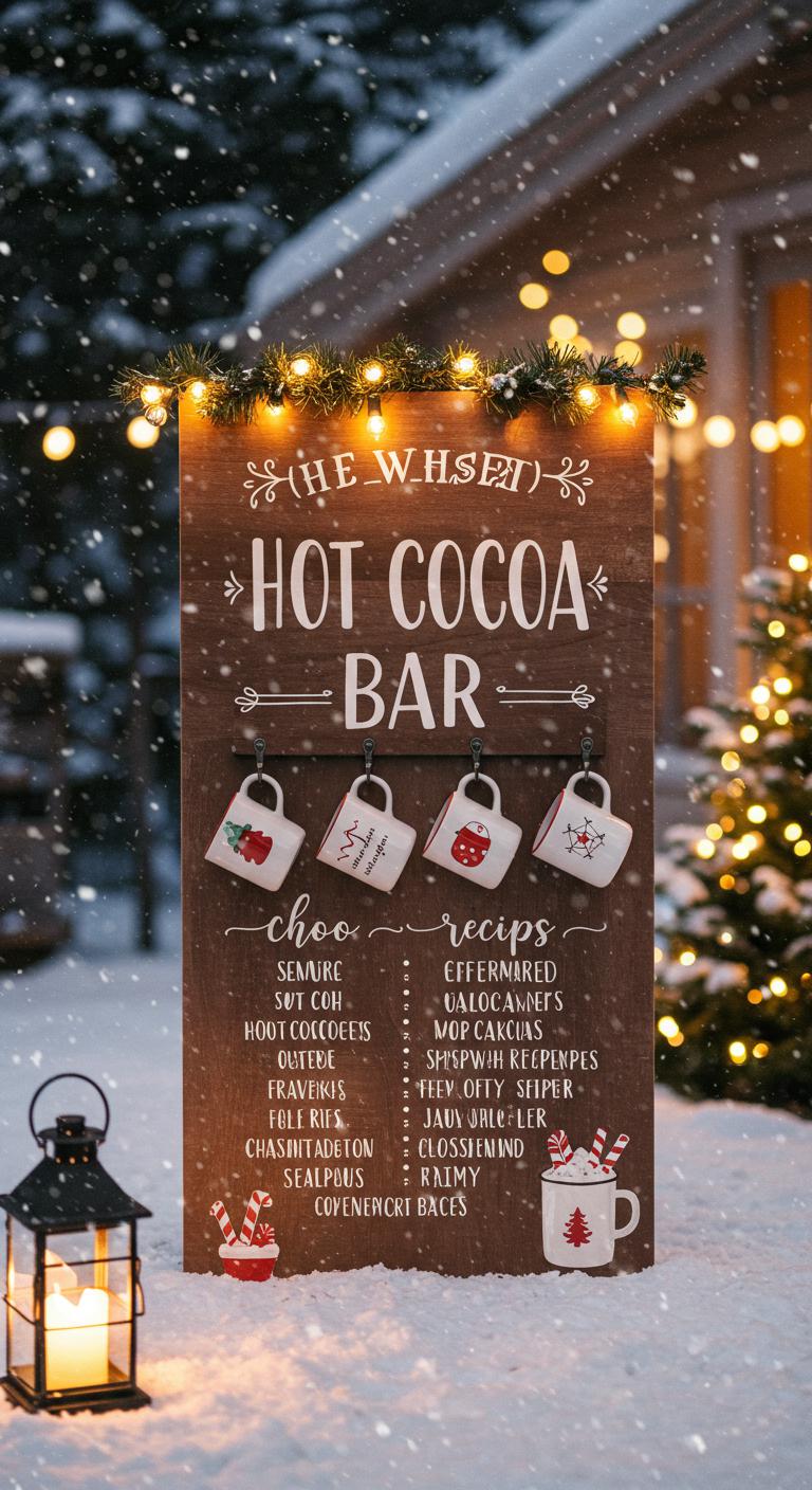 An outdoor hot cocoa bar sign turns a simple drink station into a welcoming focal point for your yard, and you can make one that’s weatherproof, readable from across the lawn, and totally on-theme.