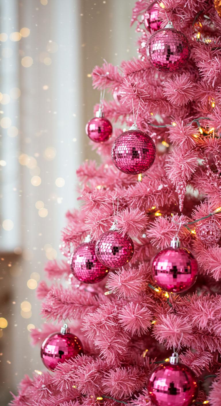Shimmering pink sequin ornaments bring a dazzling touch to your holiday decor, instantly elevating the charm of any pink-themed Christmas tree.