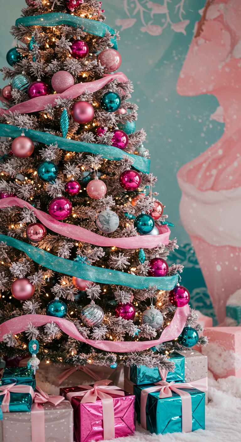 Embracing a fun pink and blue color mix can instantly elevate your holiday decor, creating a whimsical and vibrant atmosphere.