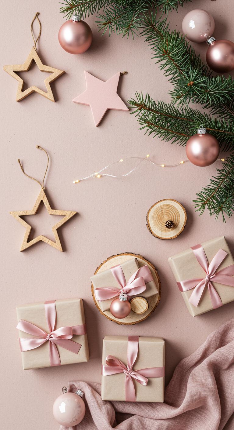 If you’re looking to create a serene and elegant holiday atmosphere, minimalist pink decor paired with natural elements offers a stunning solution.