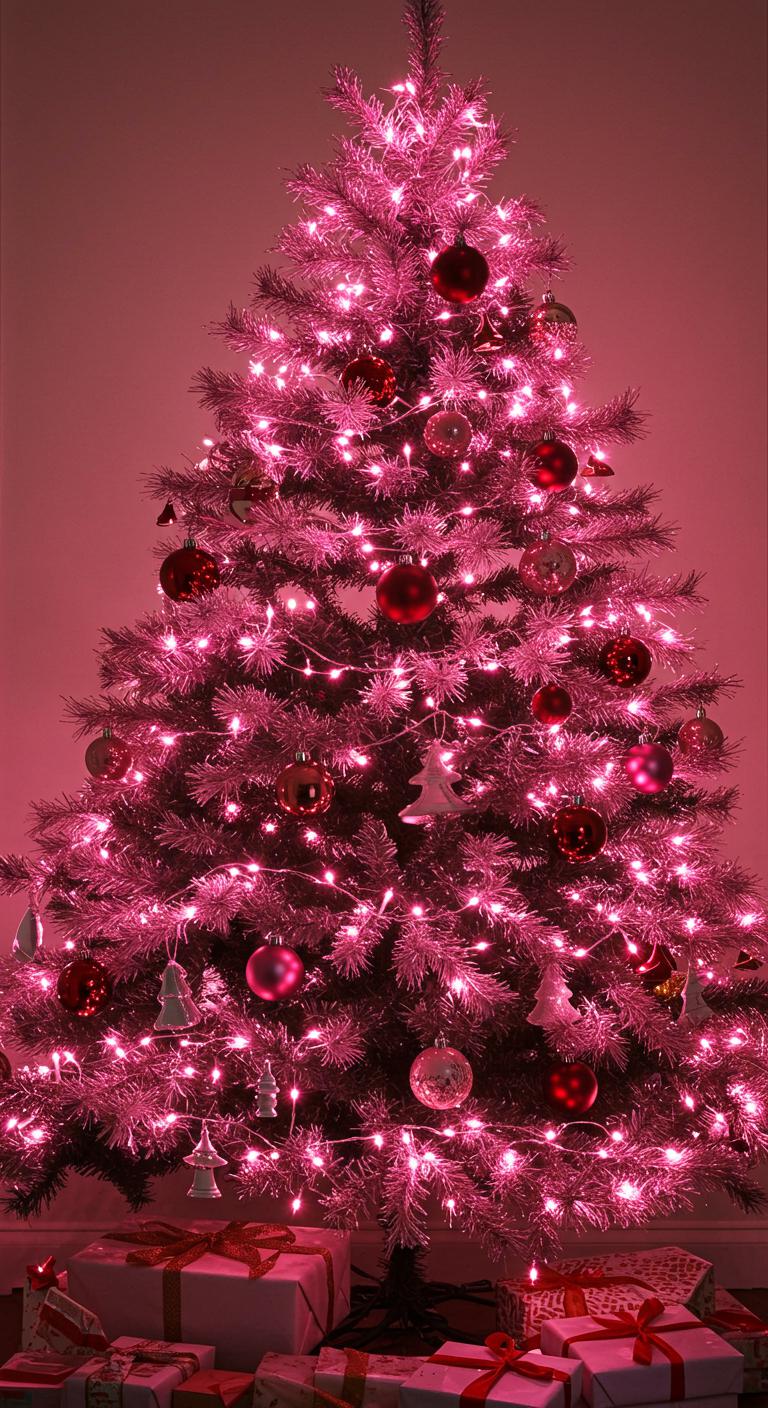 Building on the lively vibe of pink and red, sparkling pink fairy lights add a magical touch to your Christmas tree decor.