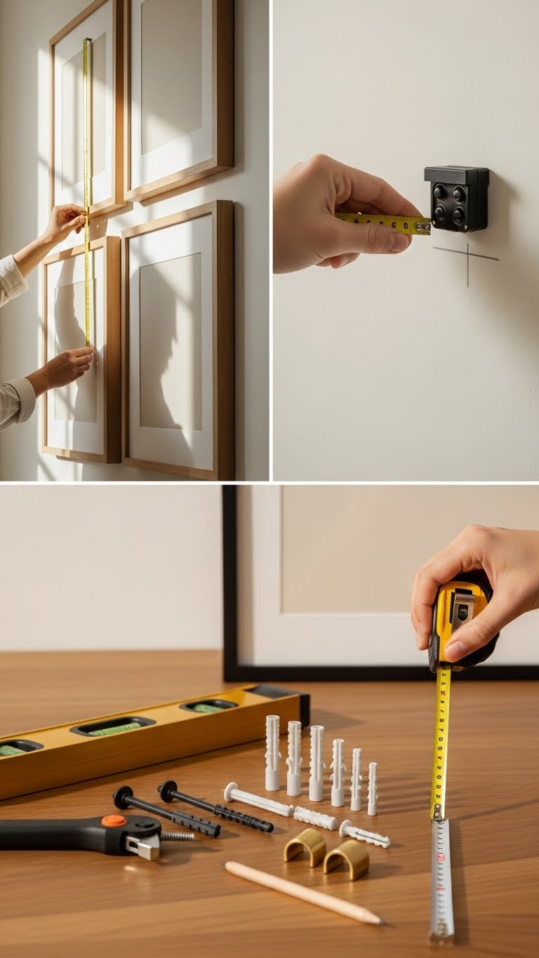 Measure eye-level centers, space pieces evenly, and choose hardware that’s both minimal and reliable for carefree, gallery-ready vibes.