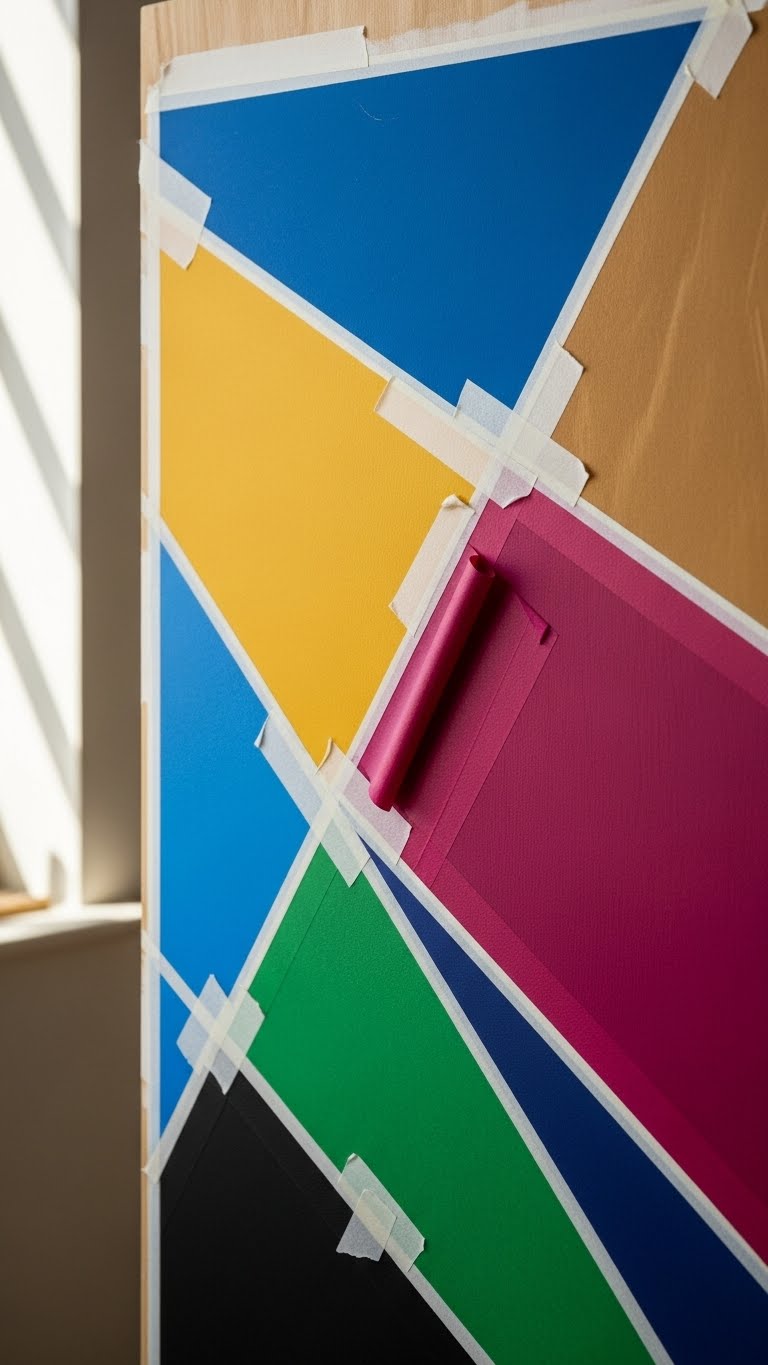 Bold Geometric Tape Art on Wood or Canvas