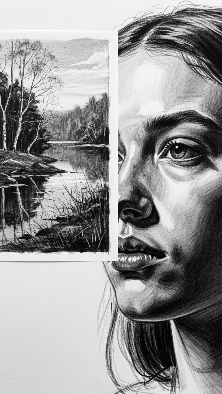 Monochrome Charcoal and White-Ink Tonal Studies
