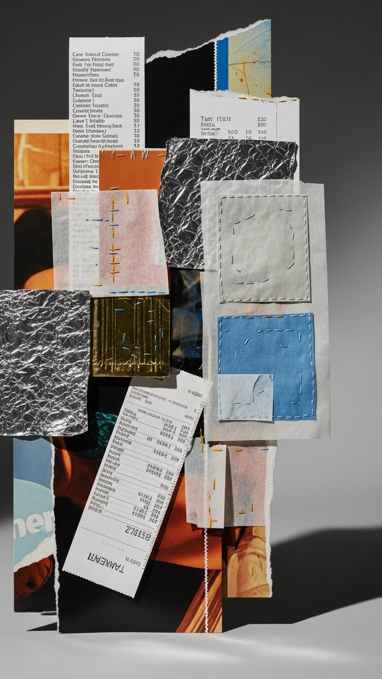 Mixed-Media Collage: Paper, Foil, and Found Objects