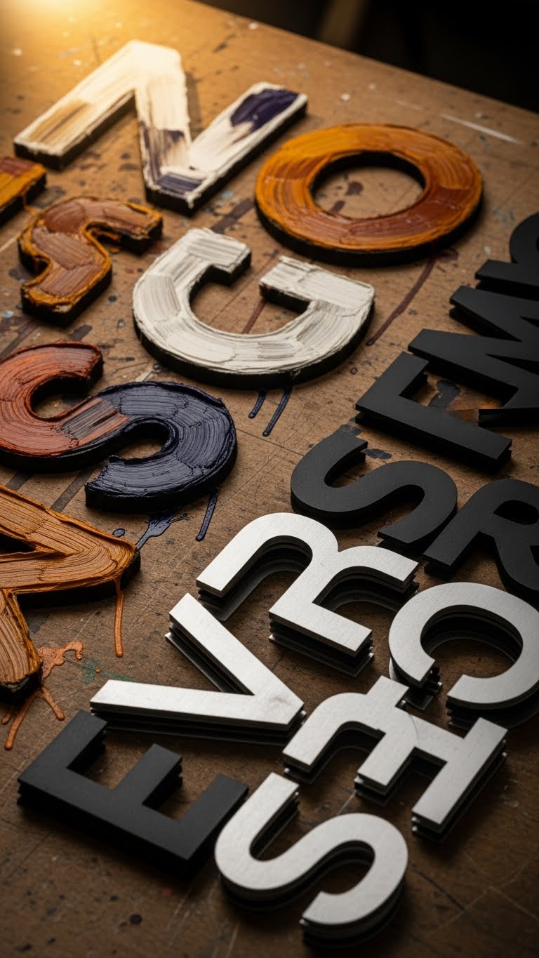 Jump into typography art and you’ll see how type can be sculpted as easily with a brush as with a laser cutter, each method offering a distinct temperament: hand-painted letters bring warmth, irregularities, and painterly gestures that read as intimate and bespoke, while laser-cut forms deliver crisp, architectural precision and the ability to layer negative space like a miniature relief.