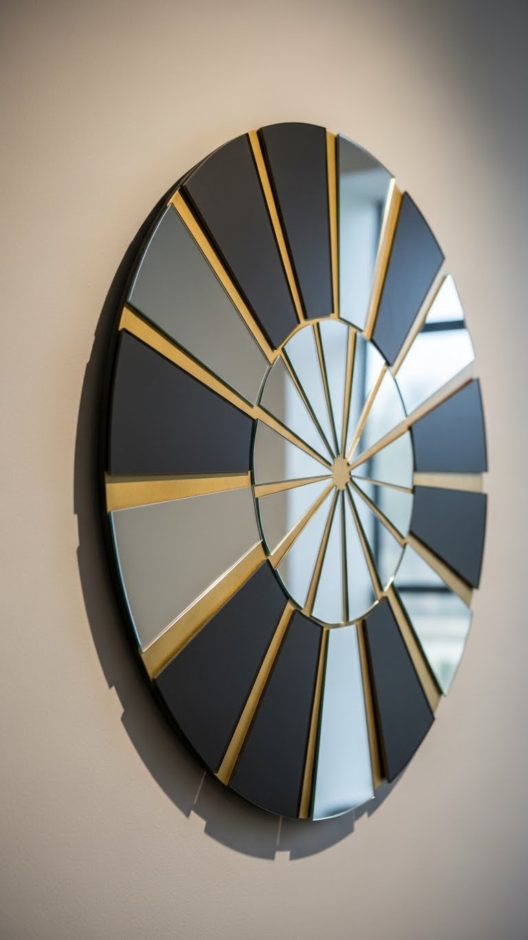 Anchor your mirror mosaic with just two colors and a single motif to keep the look curated rather than chaotic.