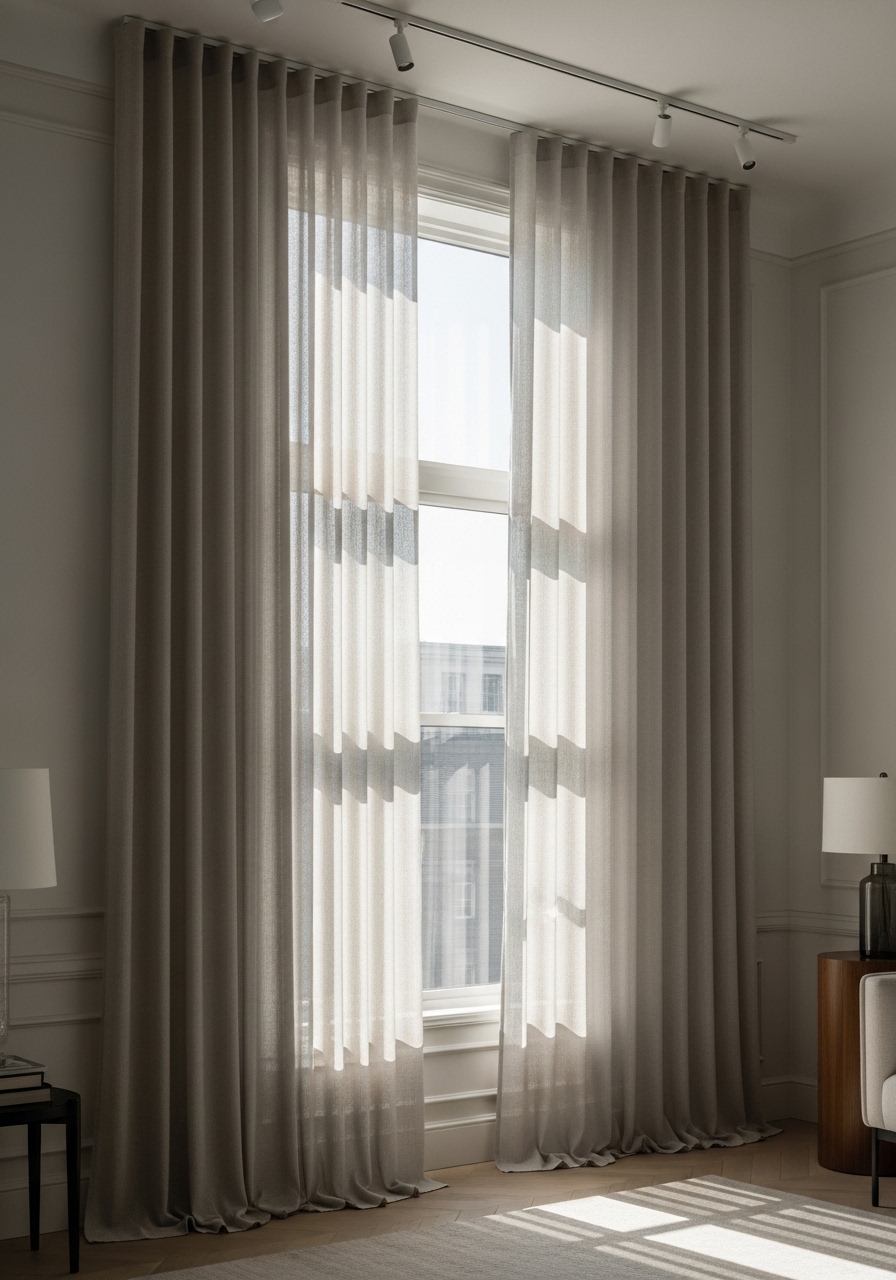 - Curtains should kiss or puddle: 96-inch panels work for higher ceilings.