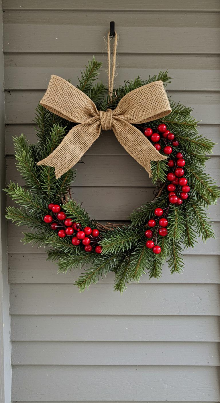 Mini Evergreen Wreaths With Berries and Burlap Bow