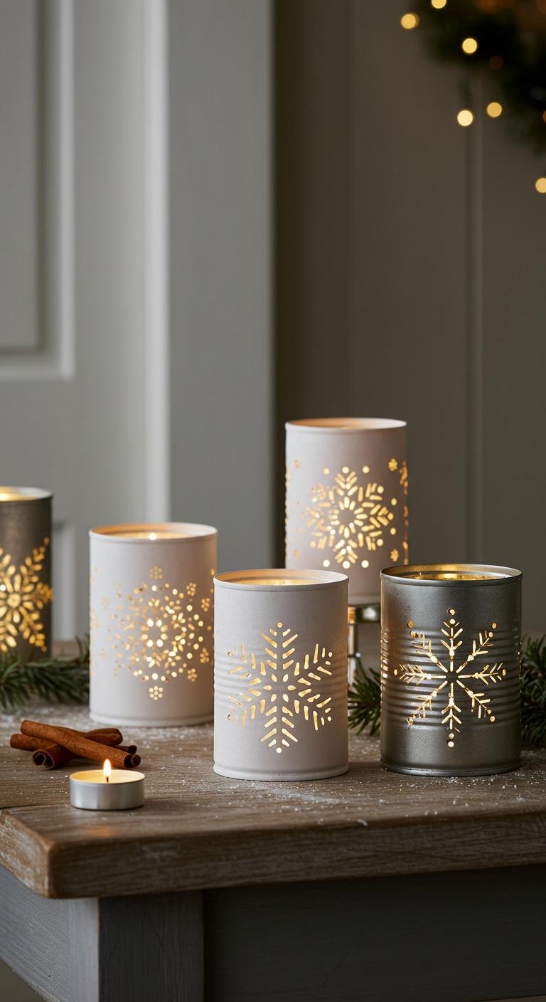 Upcycled Tin Can Candle Holders With Snowflake Cutouts