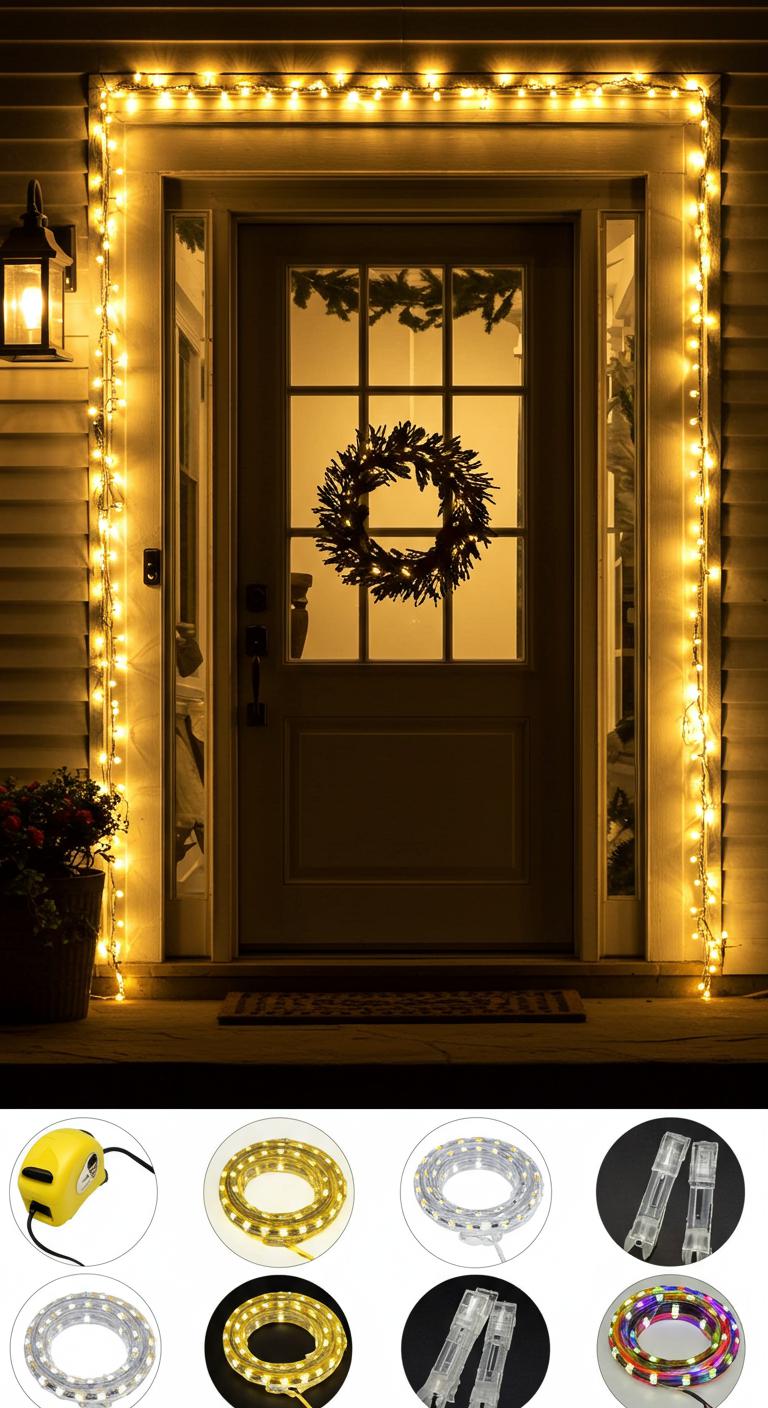 Stringing LED rope lights around your doorframe creates an instant, low-fuss focal point that guides guests to your porch and adds a clean, modern glow to any décor.