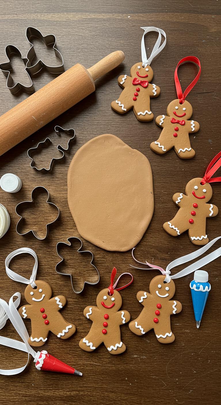 Paint simple faces, add piped icing lines, and embed ribbon loops. These gingerbread decoration ideas use straightforward clay ornament techniques so you can customize freely and confidently.