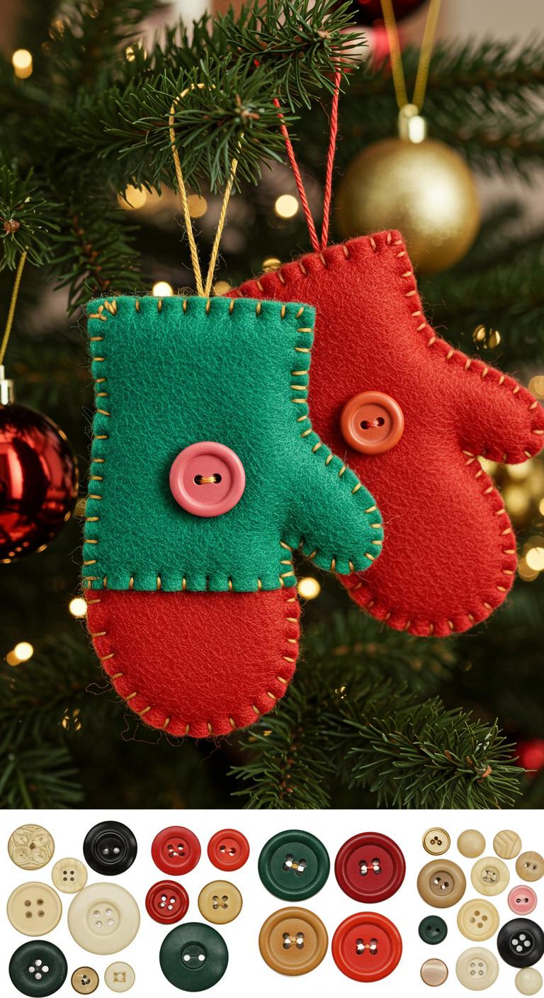 A pair of felt mittens with a bright button accent makes a quick, cozy ornament you’ll want to hang everywhere.