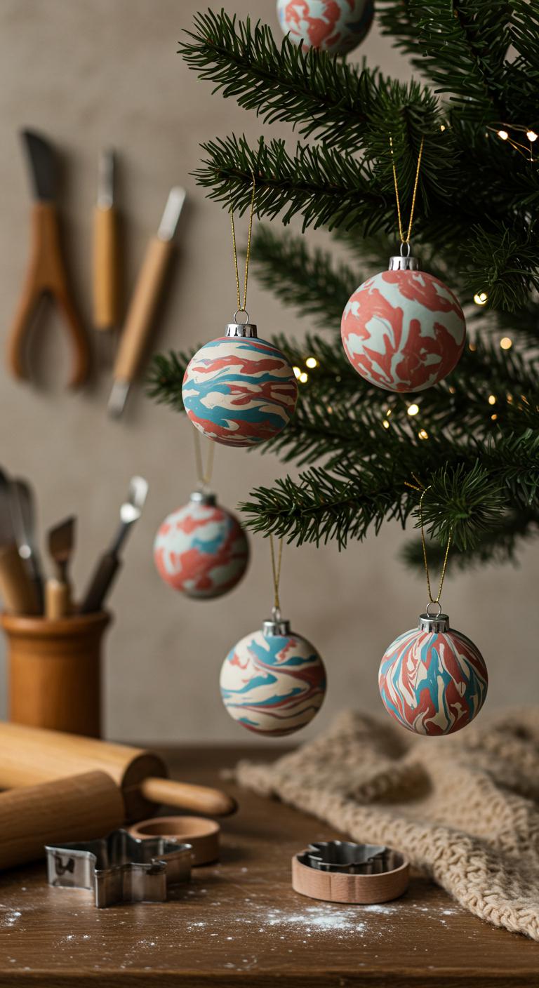 If you loved the tactile charm of the felt fox, you’ll enjoy bringing that same handmade warmth to your tree with marbled clay baubles.