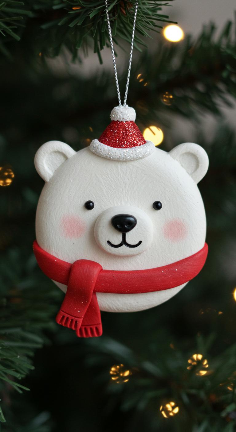 Soft white clay makes a charming polar bear face ornament that’s quick to shape and fun to personalize. You press a round base, add ears, and carve gentle features; paint subtle polar bear colors for depth. Attach a tiny scarf or glittery hat among polar bear accessories to express your style. Seal, add a loop, and hang it where it frees your holiday spirit.