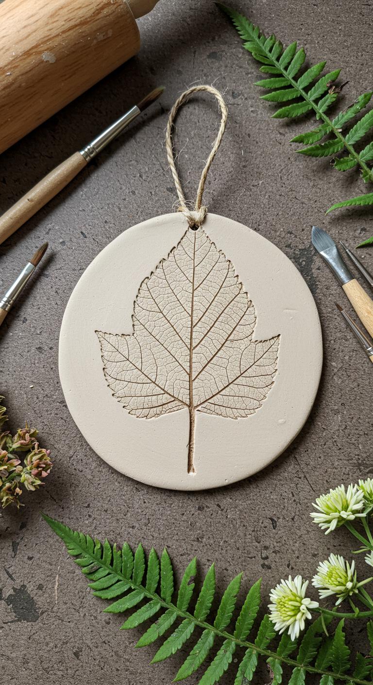 Impressing a real leaf into clay gives you a delicate, nature-inspired ornament that’s simple to make and beautiful to display. Roll clay thin, press a leaf firmly, lift to reveal veins, then cut a neat shape. Add a hole, bake or air-dry, and paint or glaze. These leaf imprint techniques create lightweight, free-spirited seasonal decoration ideas you’ll love hanging.