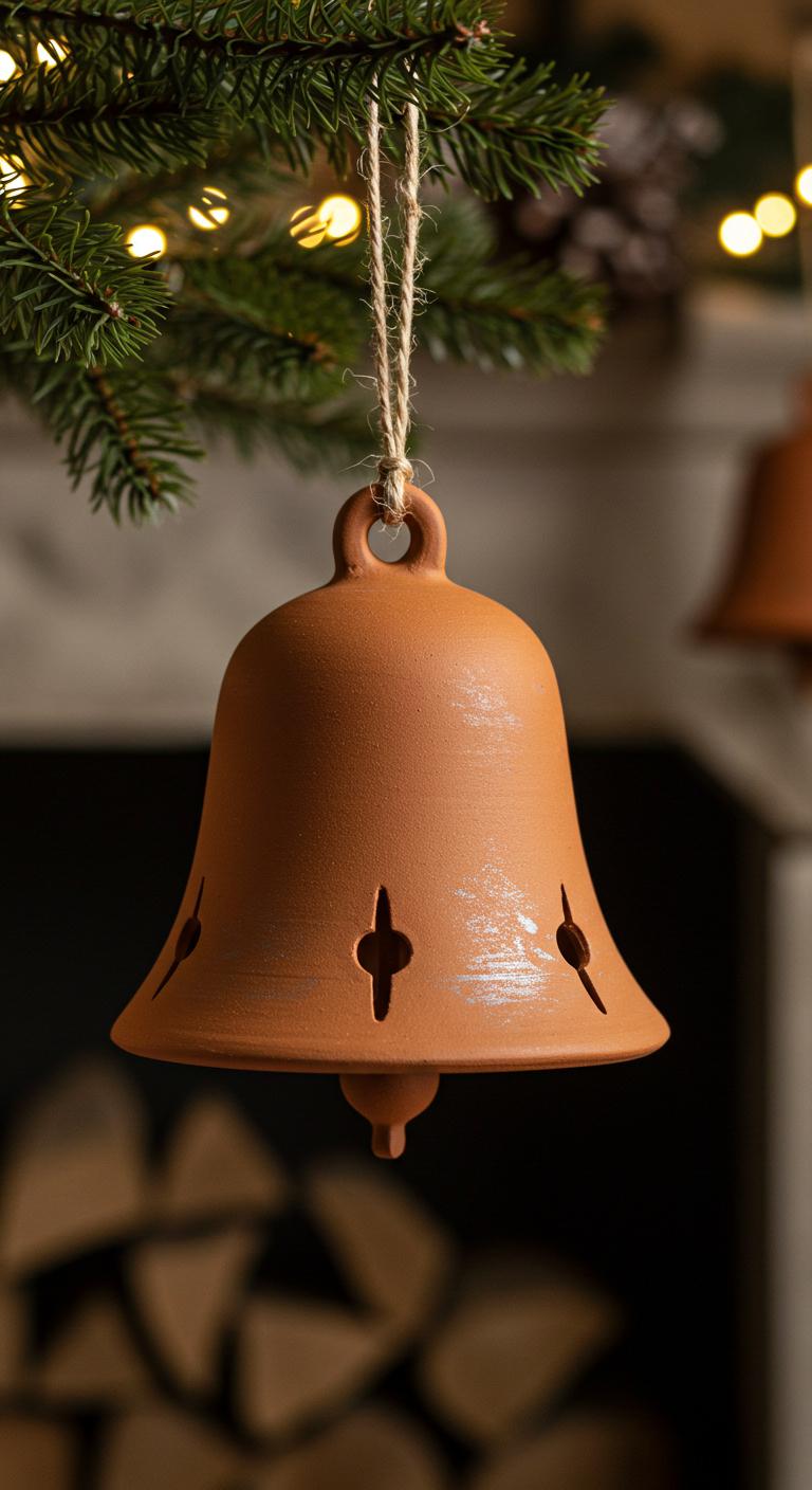 One simple clay bell with a twine hanger can bring a rustic, handmade accent to your tree or mantel—start by shaping a small bell from air-dry or oven-bake clay, smooth the seams, and press a hole at the top for the twine.