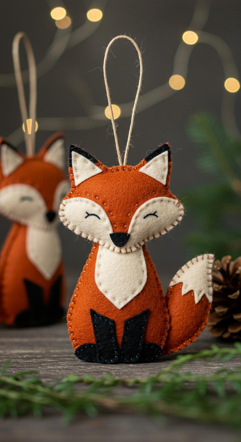 When you stitch this felt woodland fox, you’ll create a charming, soft ornament that brings woodland whimsy to your tree or garland; simple shapes and a few blanket stitches give it a handmade look even if you’re new to sewing. Pick felt fabric choices that hold crisp edges, layer rust, cream, and charcoal from woodland color palettes, stuff lightly, and add a loop.
