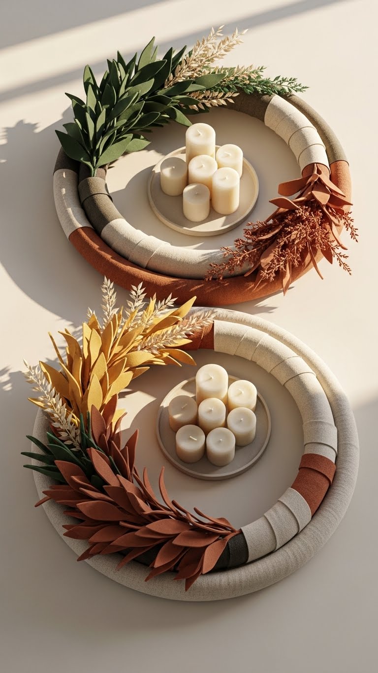 Tuck a minimal candle cluster in the center on a shallow tray to anchor the piece. You’ll get an airy, luxe fall display that’s lightweight, customizable, and unapologetically easy.