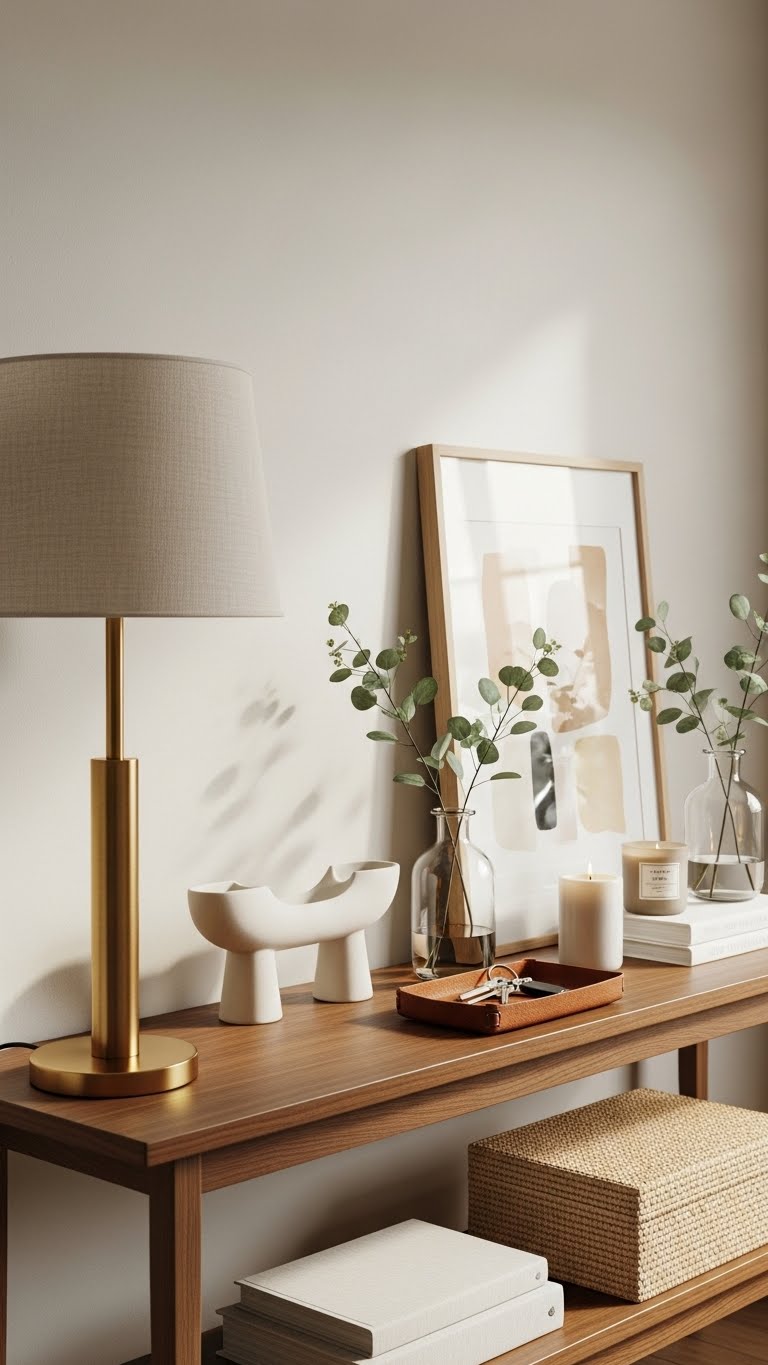 Often a sofa table feels like an afterthought, but you can style it like a pro with a simple 5-item formula that balances scale, texture, and function. Choose a lamp, low sculptural object, tray, greenery, and art—vary heights for scale balance. Use symmetry tips sparingly: anchor with pairs, then add an off-center organic piece. Pick materials that feel effortless and free.
