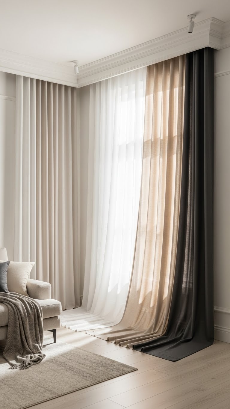 You’ll create height, drama, and flexible light control without heavy expense—freedom to style, shift, and breathe.